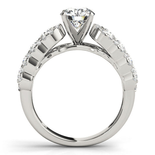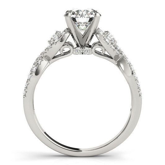 14K White Gold Round Brilliant Diamond Side Stone Twist Engagement Ring With Pave Accents (1.38ctw)