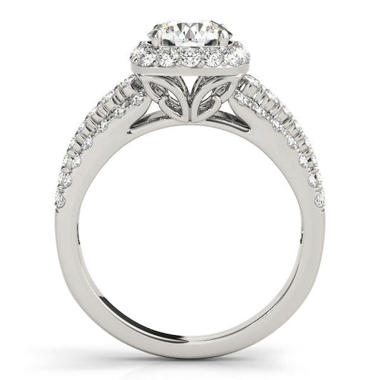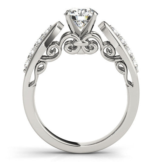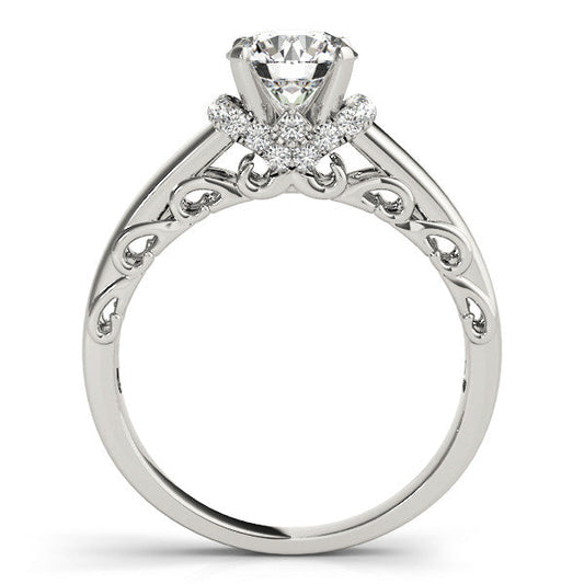 14K White Gold Round Brilliant Diamond Beaded Floral Split Shank Engagement Ring With Pave Accents (1.10ctw)