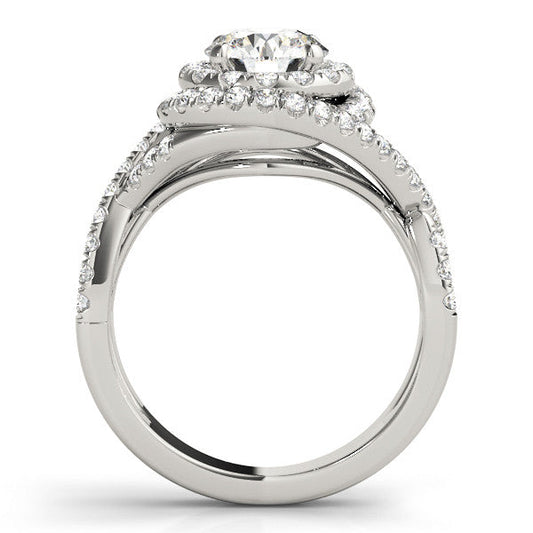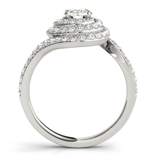 14K White Gold Round Brilliant Diamond Bypass Halo Spiral Engagement Ring With Pave Accents (1.75ctw)