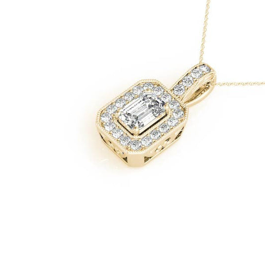 14K Yellow Gold Emerald Cut Diamond Halo Pendant With Milgrain Accents (1.25ctw)