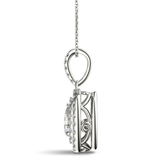 14K White Gold Pear Shape Double Halo Diamond Pendant (1.25ctw)
