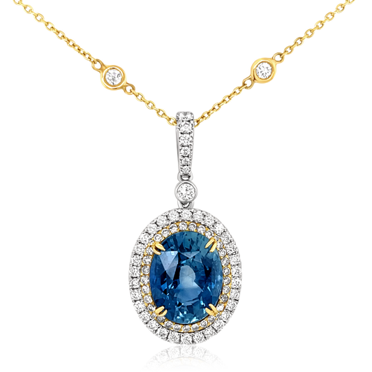 18K Two Tone Oval Sapphire & Diamond Pendant with a Diamond Necklace (8.33ctw)
