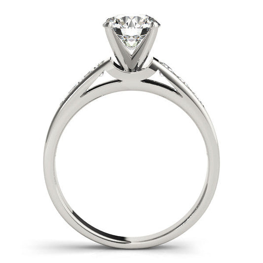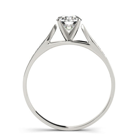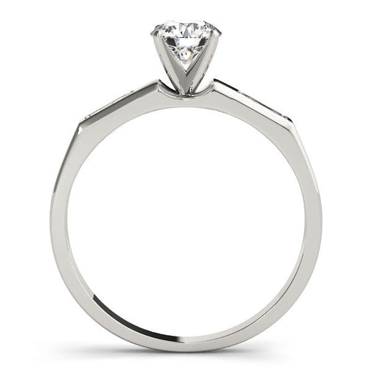 14K White Gold Round Brilliant Diamond Engagement Ring With Channel Diamond Accents