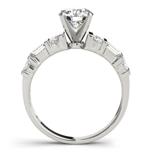 14K White Gold Round Brilliant Diamond Engagement Ring With Baguette And Round Accent Diamonds