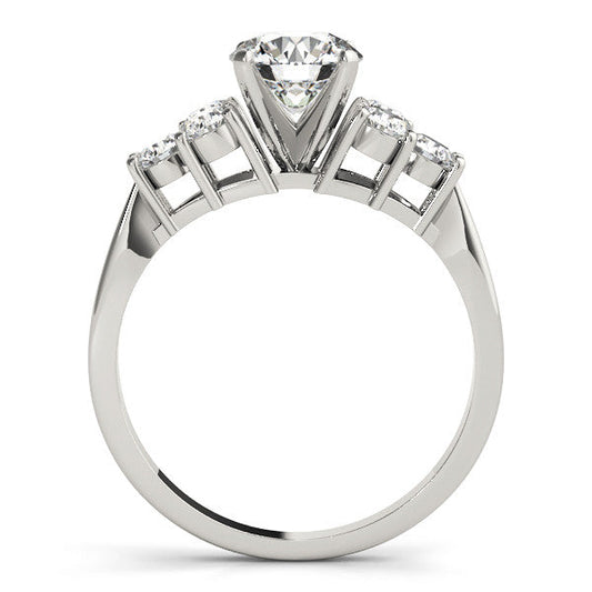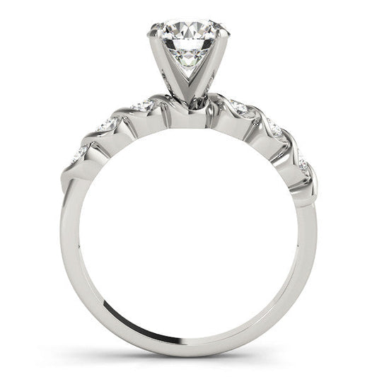 14K White Gold Round Brilliant Diamond Engagement Ring With Semi Bezel Diamond Accents