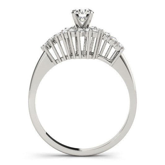 14K White Gold Round Brilliant Diamond Engagement Ring With Cluster Diamond Accents