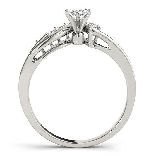 14K White Gold Marquise Diamond Bypass Engagement Ring With Pave Accents
