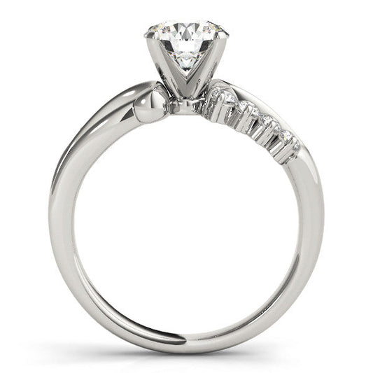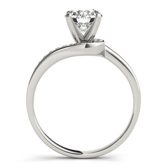14K White Gold Round Brilliant Diamond Bypass Engagement Ring With Channel Diamond Accents