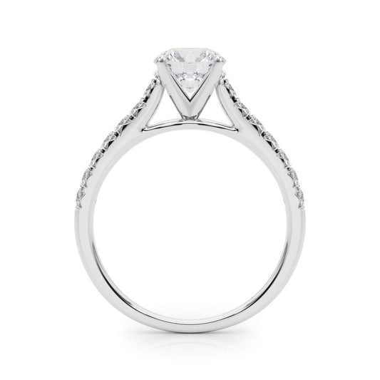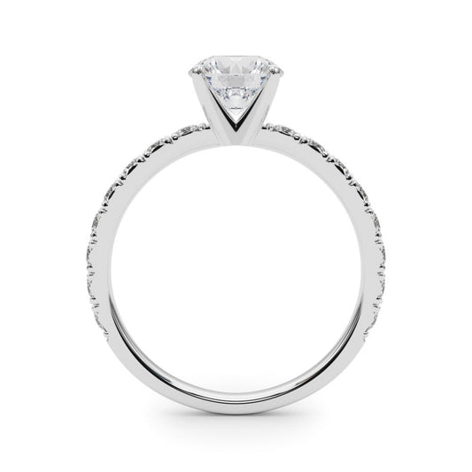 14K White Gold Round Brilliant Diamond Engagement Ring With French Pave Accent Diamonds