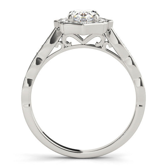 14K White Gold Oval Diamond Scalloped Halo Engagement Ring