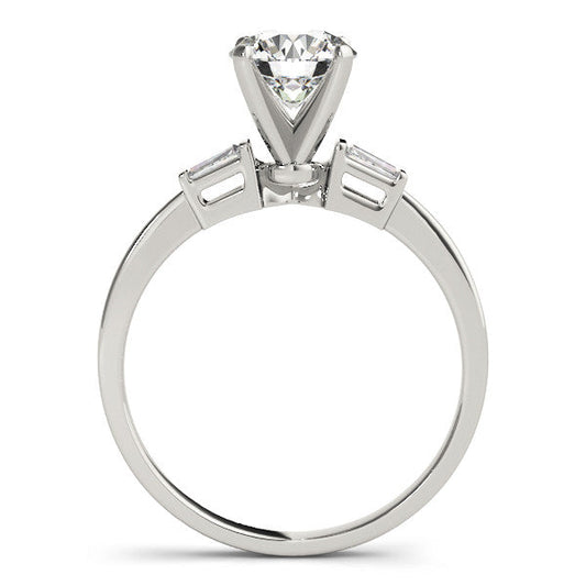 14K White Gold Round Brilliant Diamond Engagement Ring With Baguette Accents