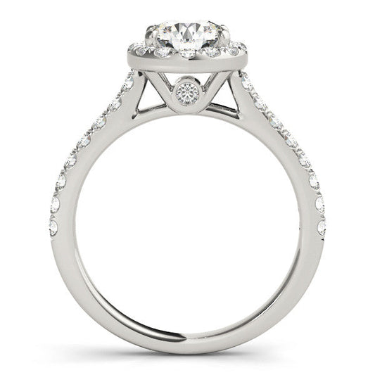 14K White Gold Round Brilliant Diamond Halo Engagement Ring With Pave And Peekaboo Diamond Accents