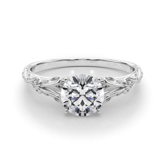 14K White Gold Round Brilliant Diamond Vintage Inspired Engagement Ring