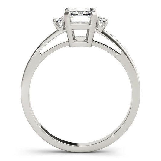 14K White Gold Emerald Cut Diamond Three Stone Engagement Ring