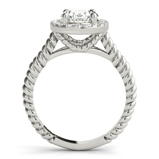 14K White Gold Oval Diamond Halo Engagement Ring With Braided Shank (1.10ctw)