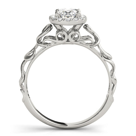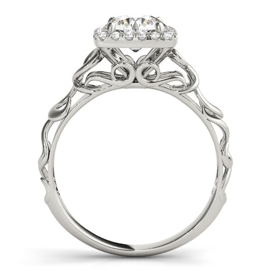 14K White Gold Round Brilliant Diamond With Cushion Halo Engagement Ring (1.15ctw)