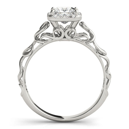 14K White Gold Princess Cut Diamond Halo Engagement Ring With Scalloped Shank (1.10ctw)
