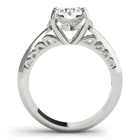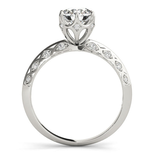 14K White Gold Round Brilliant Diamond Engagement Ring With Diamond Scalloped Accents (1.10ctw)