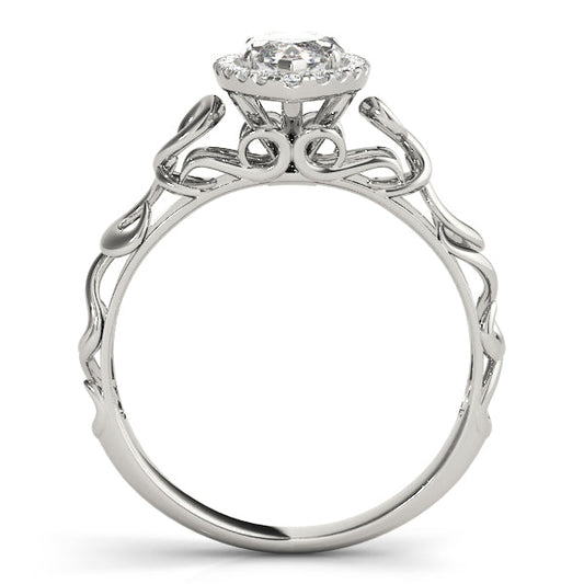 14K White Gold Round Brilliant Diamond Halo Engagement Ring With Scalloped Shank (1.15ctw)