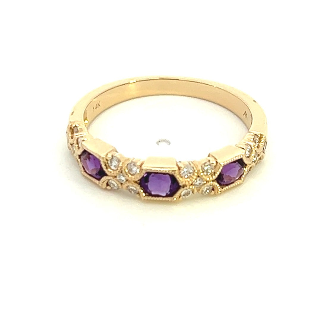 14K Yellow Gold Oval Amethyst and Diamond Stackable Ring ( .66ctw)